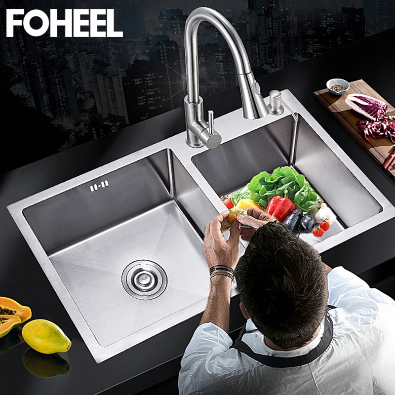 Foheel Double Kitchen Sink Drain Basket Rectangular Sink For Kitchen 780x430mm Sink For Home Easy Use Stainless Steel Kitchen Sinks Aliexpress